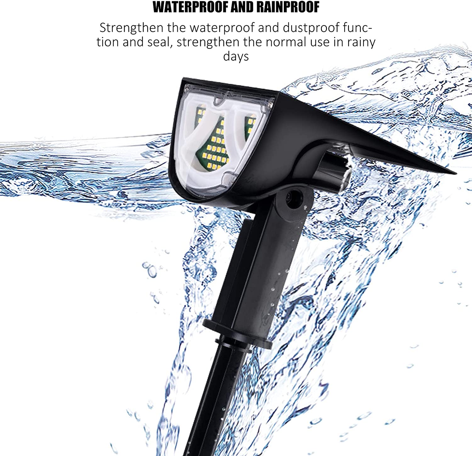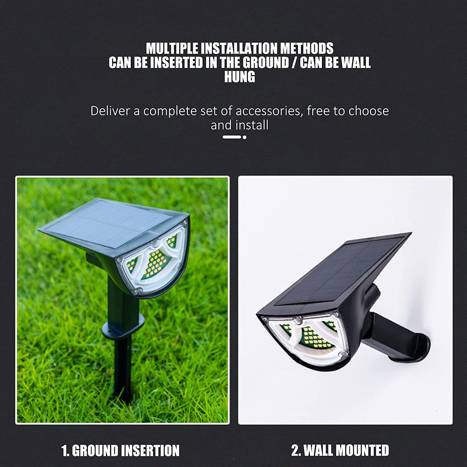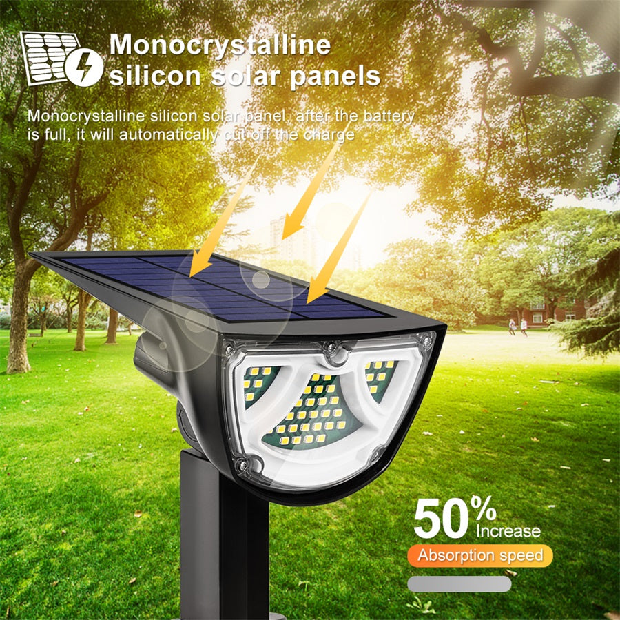 This lamp has led beads on the front and back. So both sides can emit light. In this way, the lampcan illuminate the road and the grass and flowers