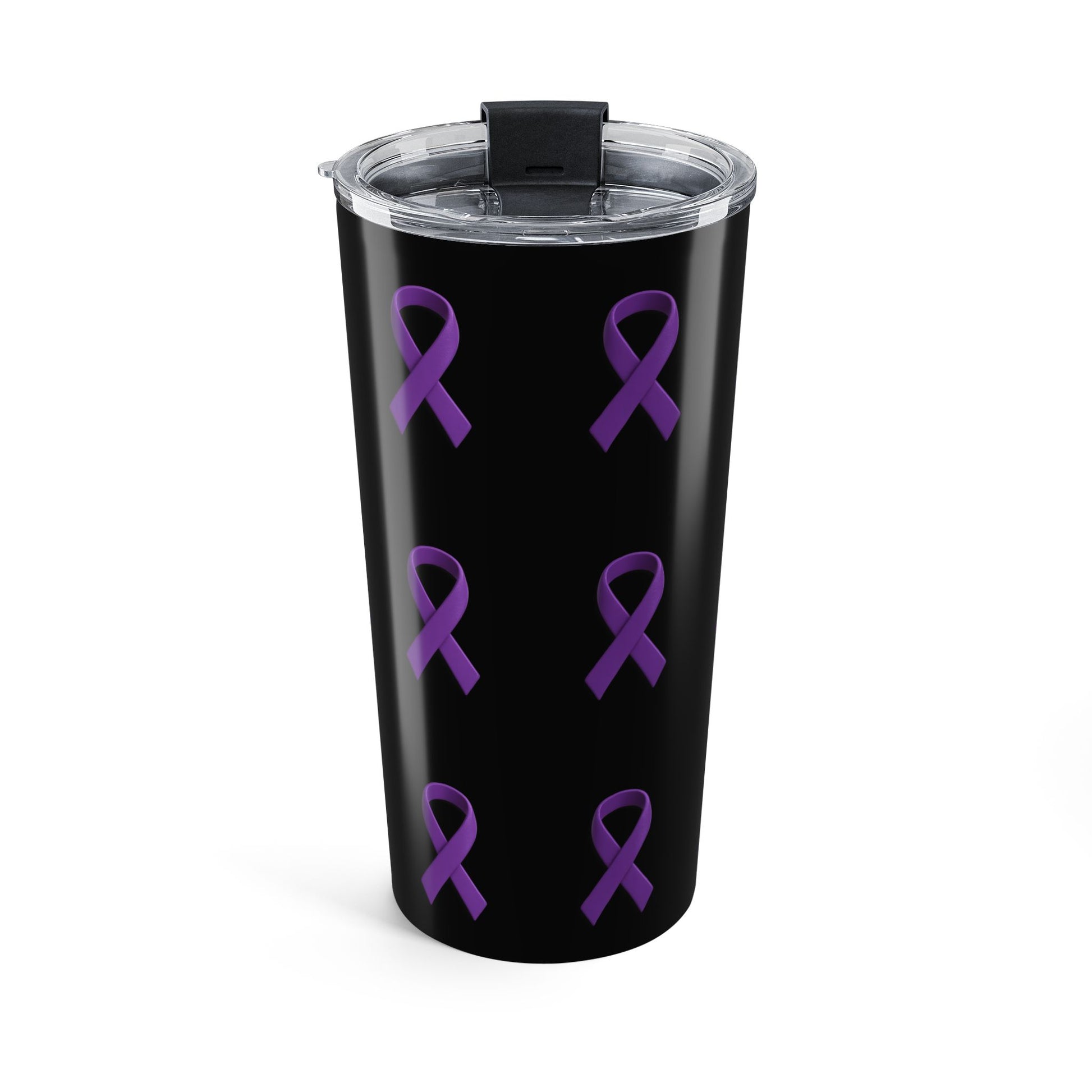 Sip with purpose. This sleek black tumbler features a striking pattern of purple awareness ribbons, symbolizing strength, solidarity, and the ongoing fight against domestic violence. Designed for both style and statement, itβs perfect for October campaigns or year-round advocacy.