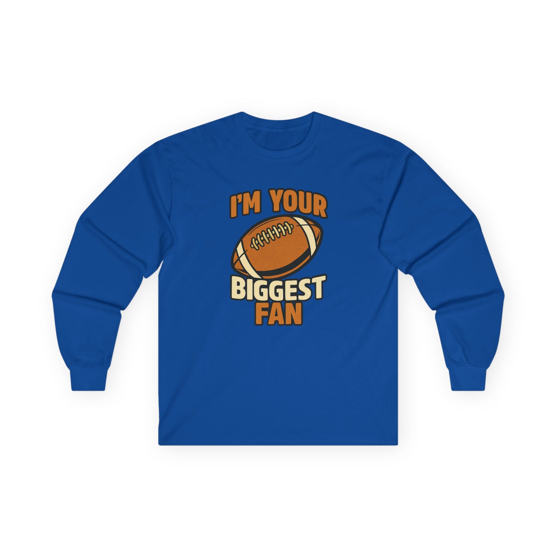 Show up loud, proud, and ready to cheer in our "I'm Your Biggest Fan" long sleeve tee! Whether you're rooting for your kid on the court, your team under the Friday night lights, or your favorite player from the stands, this shirt brings the energy and the love. With cozy sleeves and a relaxed fit, it’s perfect for chilly game nights, school spirit events, or just repping your fandom in style. Because being the biggest fan isn’t just a title—it’s a lifestyle.
