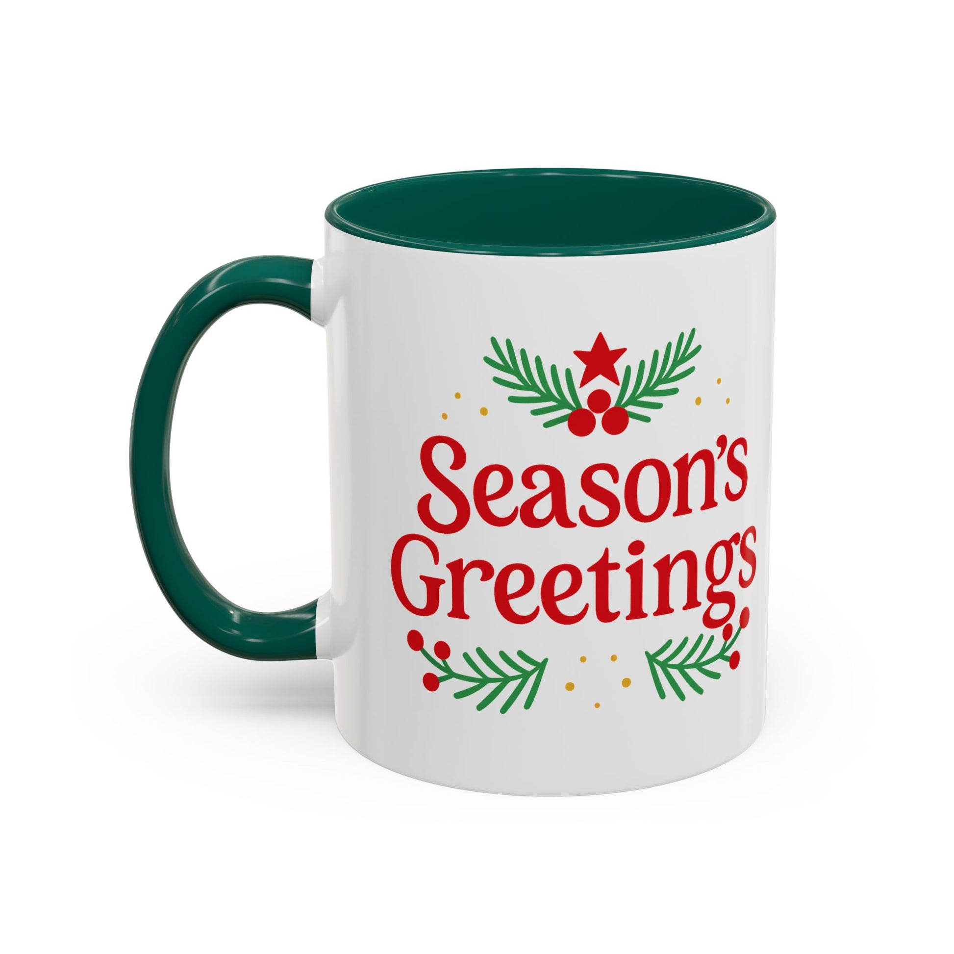 Send a cozy message of cheer with our “Season’s Greetings” ceramic mug—perfect for sipping hot cocoa, spiced tea, or your favorite holiday brew. Featuring elegant script and festive accents, this mug adds a touch of winter charm to any kitchen or coffee bar. Whether you're gifting it to a loved one or treating yourself, it’s a timeless way to celebrate the season.