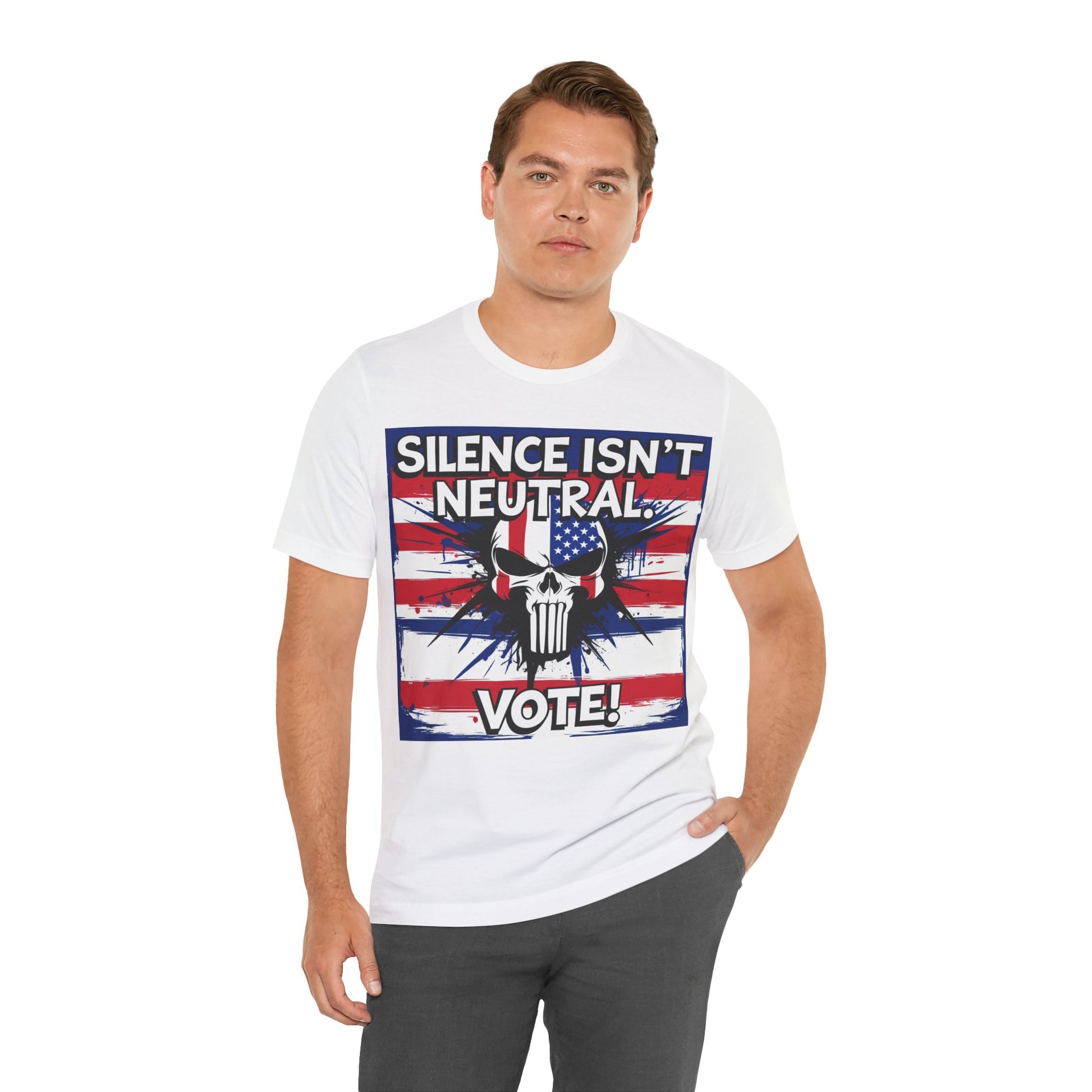 Make your stance clear with the “Silence Isn’t Neutral. Vote!” tee—a powerful reminder that staying quiet is not an option when it comes to justice and change. Designed for comfort and impact, this classic unisex jersey short sleeve feels like a favorite from day one and keeps its shape wear after wear.
